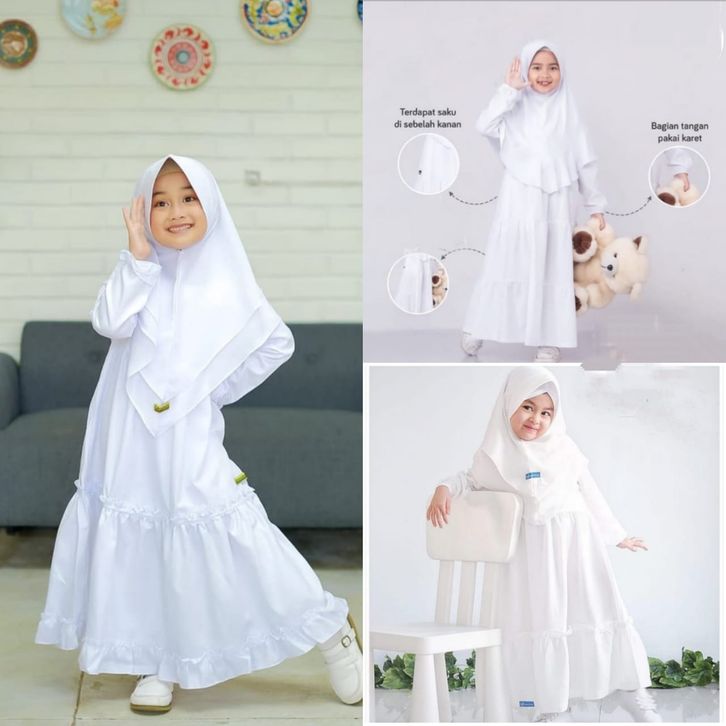 PROMO Gamis Anak Putih Manasik Haji Pakaian Muslim Anak Syari Anak setelan anak muslim BONUS HIJAB efehs