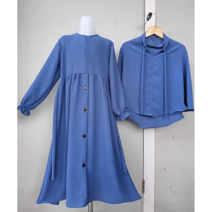 ORIGINAL Gamis Anak Kayra Model Kancing Satu Set Dengan Kerudung bahan Crinkle Airflow nyaman di pakai/real pict