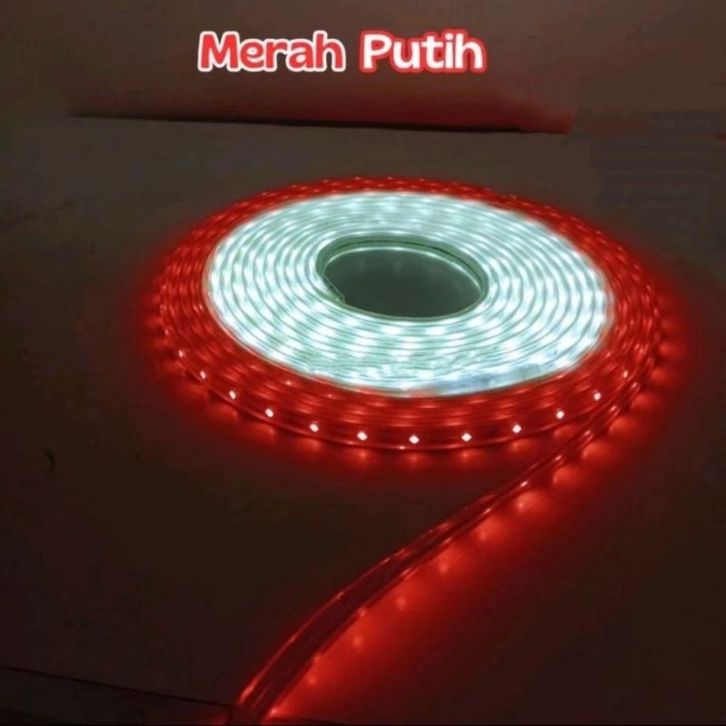 Paket Lampu Strip Selang Merah+putih+adaptor 3528 220V Led Strip Agustus Lampu 4meter 6meter 8meter 10meter