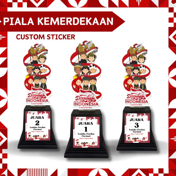 Piala Akrilik Kemerdekaan Plus Tatakan W4 Custom Sticker hadiah Lomba Lomba 17 Agustusan Spesial kemerdekaan Indonesia