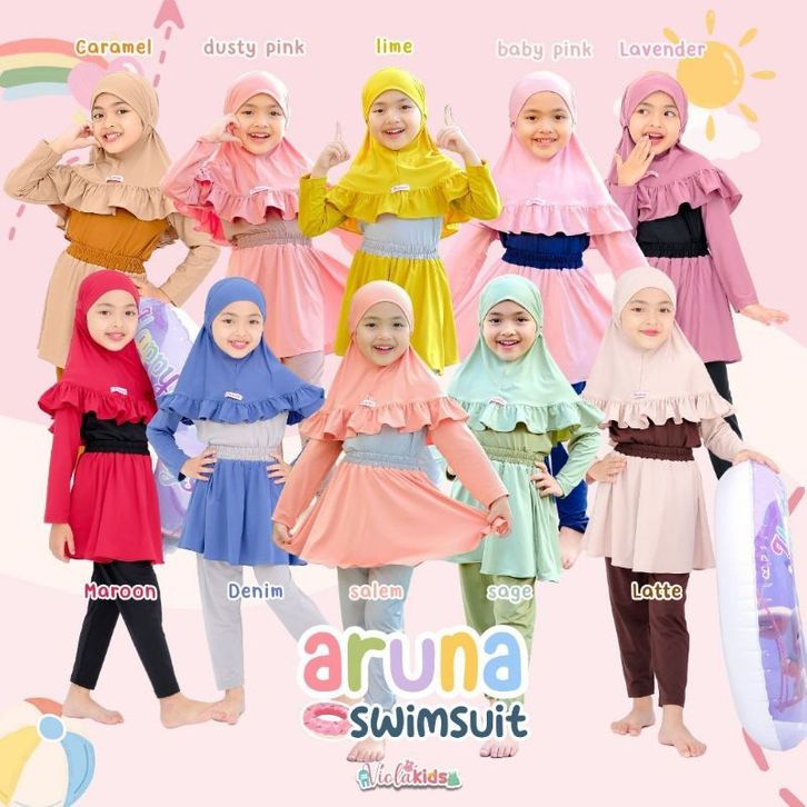 TERMURAH READY ARUNA SWIMSUIT 3 In 1. Baju Renang Muslim Anak Perempuan ohodc