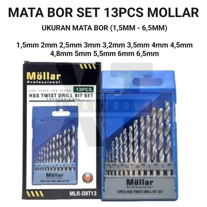 Mata Bor Besi 13 Pcs Mollar / HSS Drill Twist Bit Set 1,5mm 2mm 2,5mm 3mm 3,2mm 3,5mm 4mm 4,5mm 4,mm