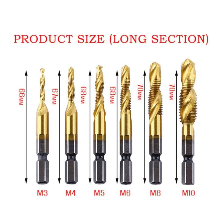 Mata Bor Pembuat Ulir Drat 6Pcs Drill Tap set M3-M1 Hex Twist Drill Tap Set Tapg Debur Hex