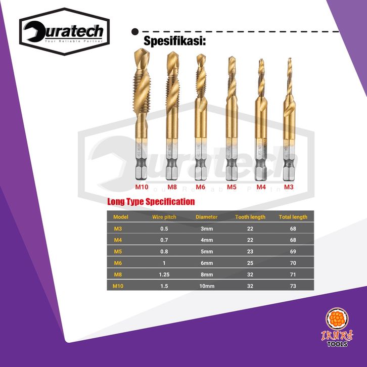Mata Bor Pembuat Ulir Drat 6pcs Drill Tap Set M3-M1 Hex Twist Drill - Mata Bor Tap Ulir Baut Drat