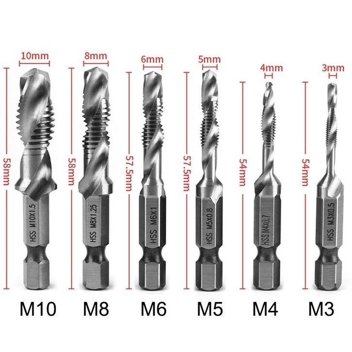 KONGDO Mata Bor Pembuat Ulir Drat 6Pcs Drill Tap set M3-M1 Hex Twist Drill