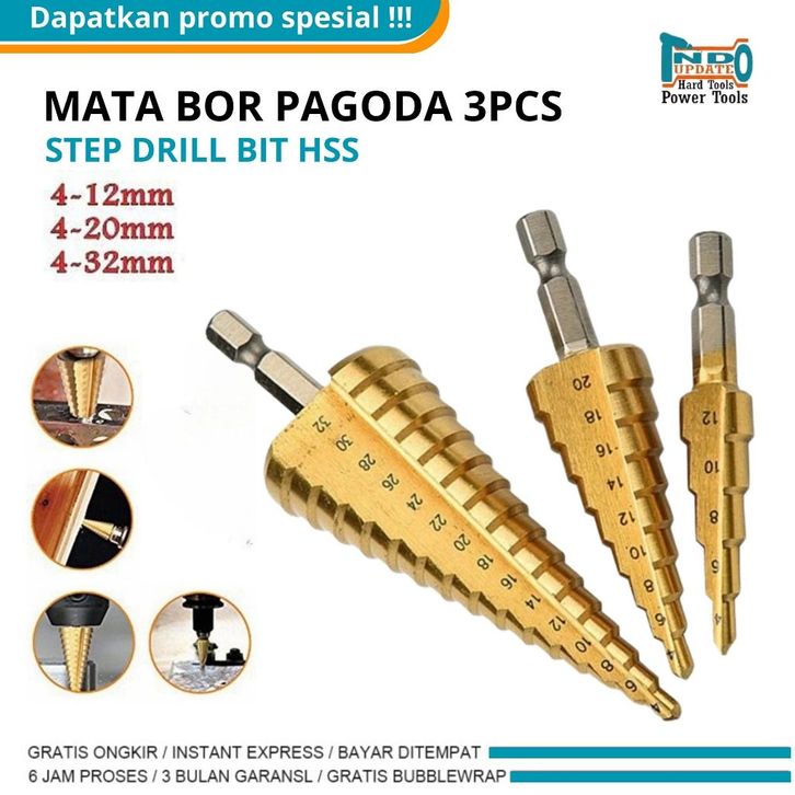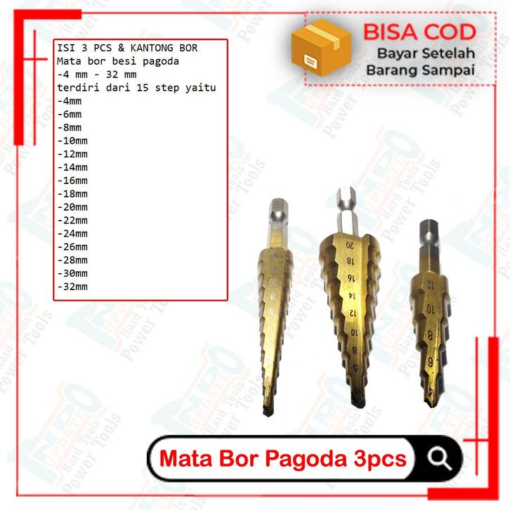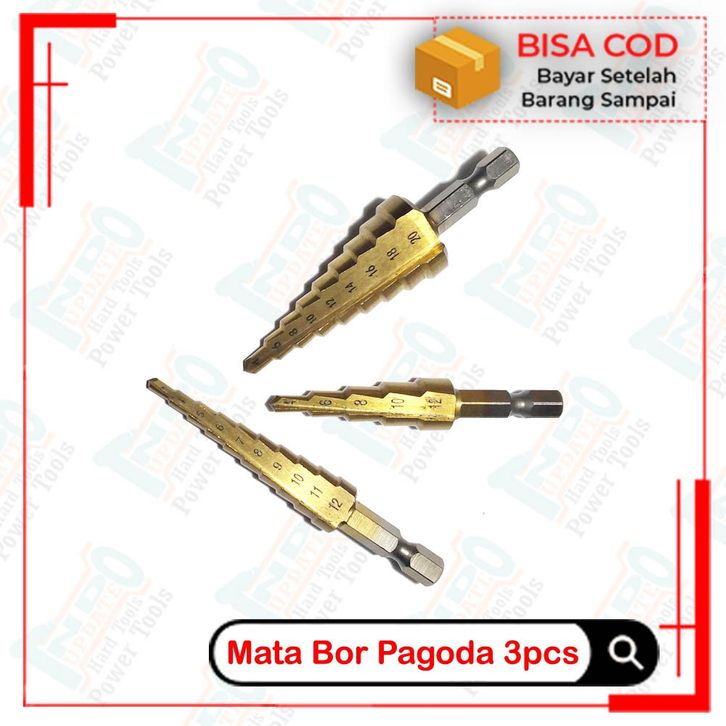 Mata Bor 3 PCS STEP DRILL dril mata bor Pagoda besi kerucut Cone drill hole saw multi