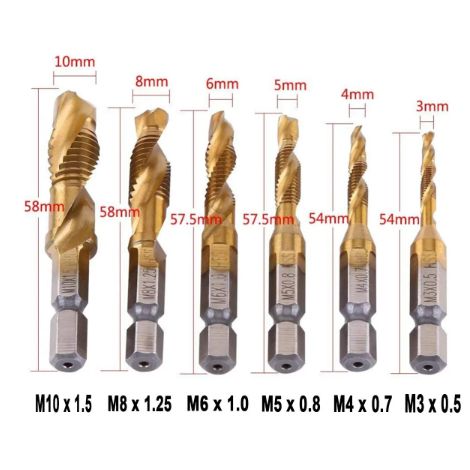 6PCS Mata Bor Pembuat Ulir Drat Drill Tap Set Spiral Tapper Baut Bit Drilling