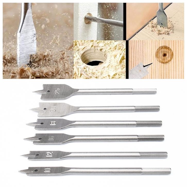 JLD 6PCS Mata Bor Kipas Pelubang Kayu Power Spade Drill Bit Set Flat Bit For Woodworking