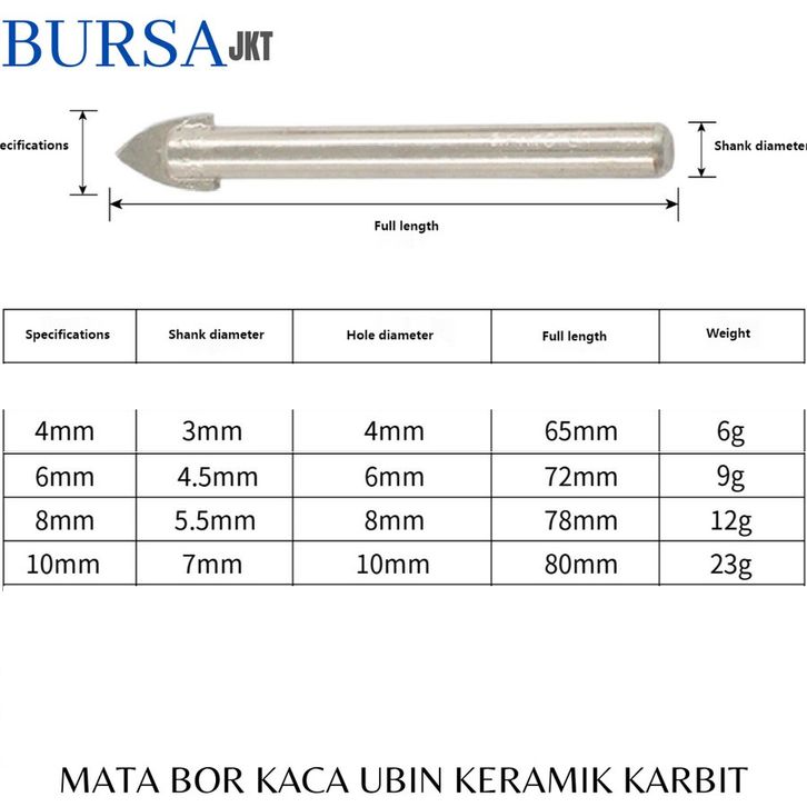 Mata Bor Set Tombak Kaca / Keramik / Batu Drill Bits Set 4 Pcs