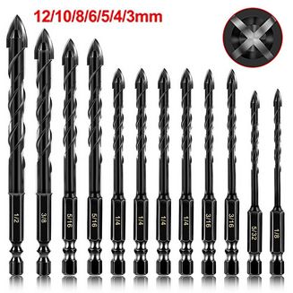 12pcs Mata Bor Cross Hex 3-12mm Mata Bor Hex Bahan Alloy Untuk Melubangi Kaca / Keramik / Beton