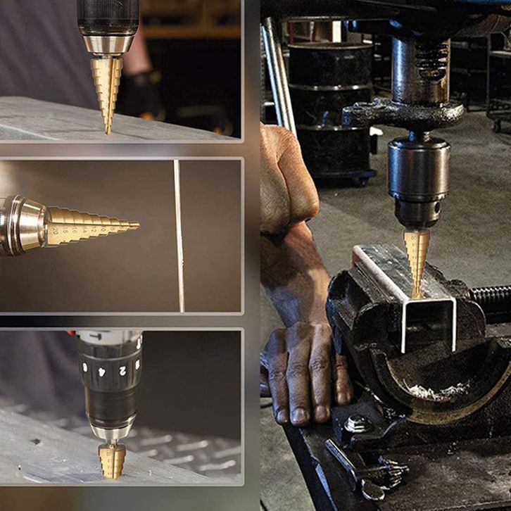 JLD 3PCS Mata Bor Spiral Pagoda HSS Titanium Coating Steel Step Drill Bits Multifungsi