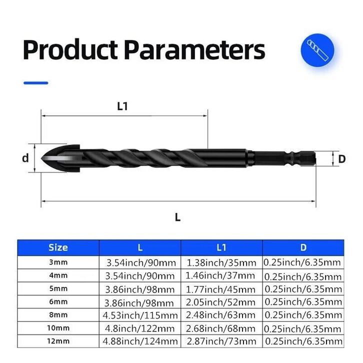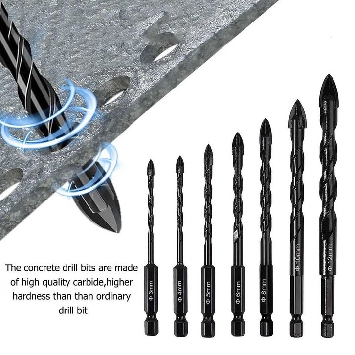 6Buah 3-12mm Mata Bor Keramik Tembok Beton Kaca Besi DLL Mata Bor Tungsten Caide Cross Hex Tile
