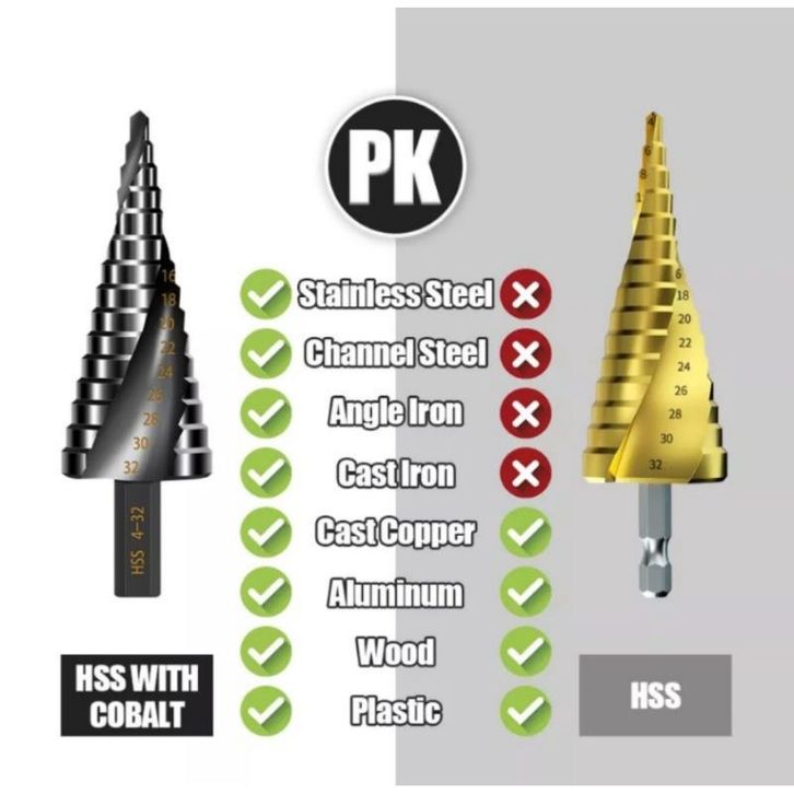 Mata Bor Step Drill Pagoda Hitam Kerucut Spiral HSS Titanium Besar Mata Bor Besi Pagoda Kerucut