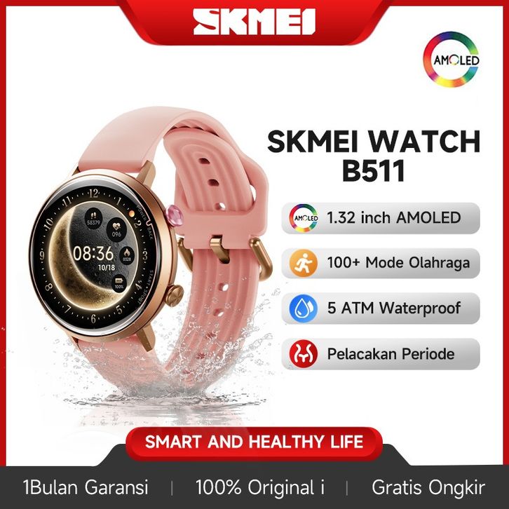 SKMEI smartwatch 5 ATM tahan air AMOLED Jam tangan pintar wanita baru smartwatch Fitness Heart Rate Sleep