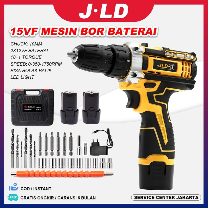 JLD- 15vf Mesin Bor Baterai Cordless Drill 1MM Bor Tangan Bor Cas Murah Komplit Bisa Besi Beton Kayu