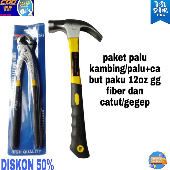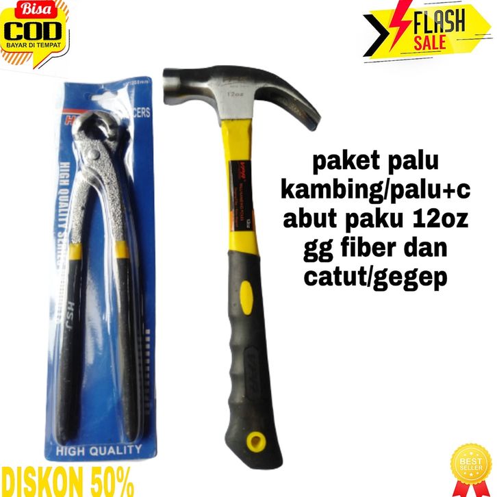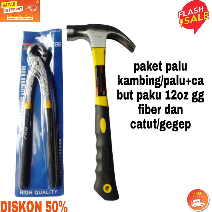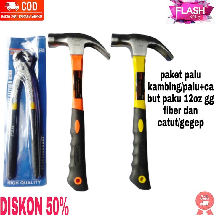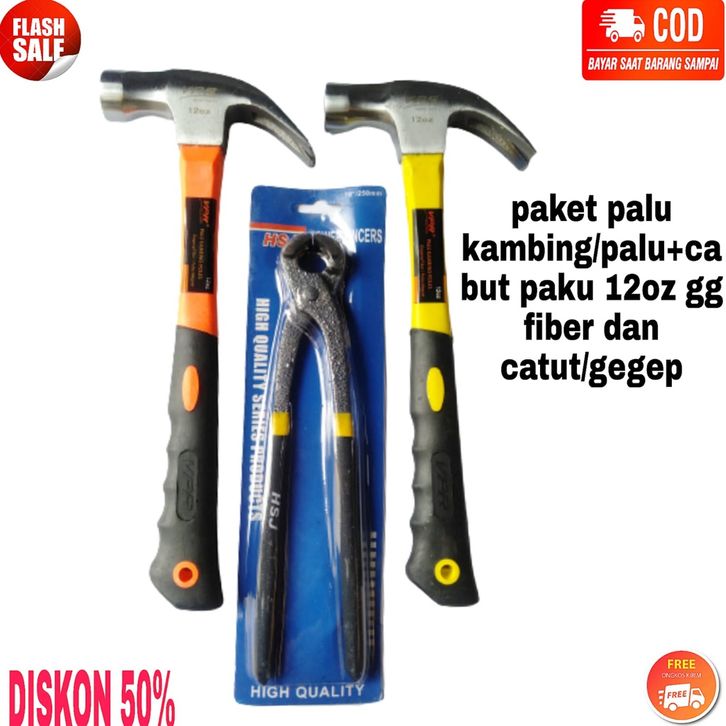 paket palu kambing 12oz gagang fiber dan catut/gegep kakatua palu kambing/palu cabut paku 12oz dan