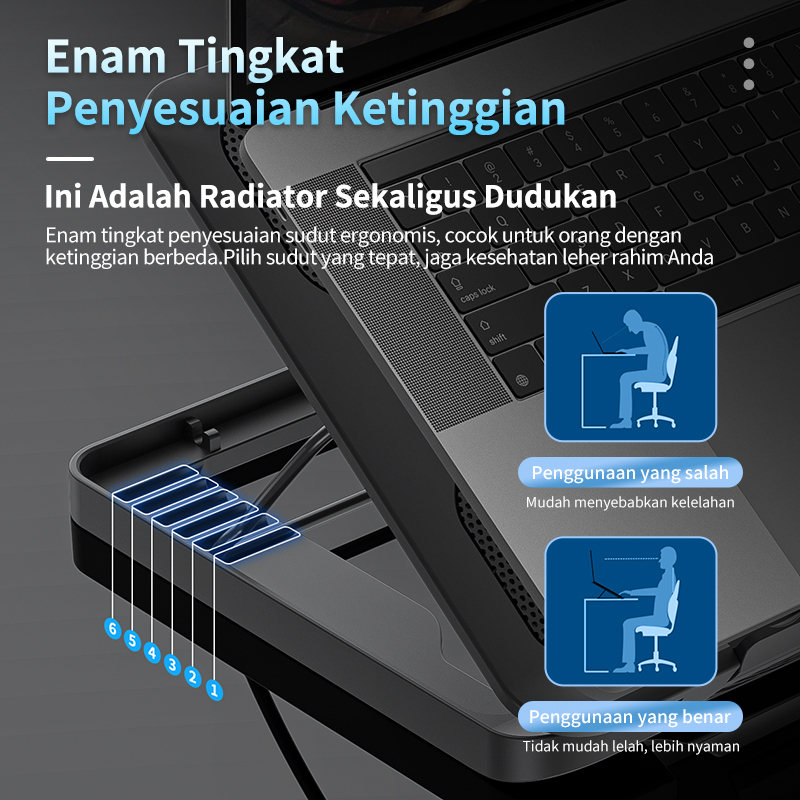 OLYPS COOLING PAD LAPTOP 5 TURBO FAN KIPAS PENDINGIN LAPTOP COOLER SILENCE 6 LEVEL HEIGHT ADJUSTABLE