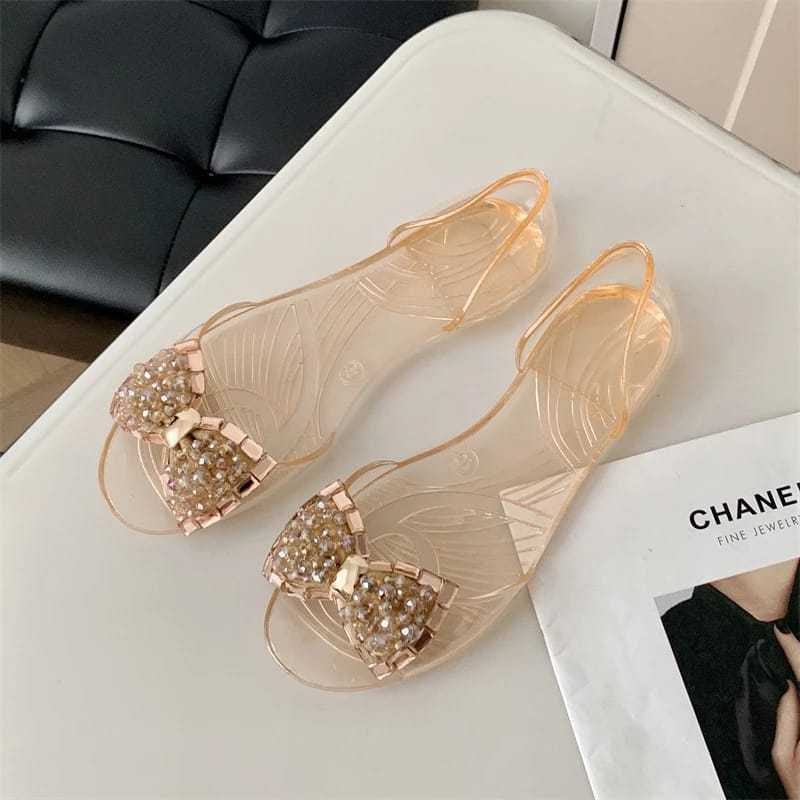 SEPATU JELLY WANITA DEWASA VARIASI PITA TRANSPARAN (186-C 36-39)sepatu kaca transparan