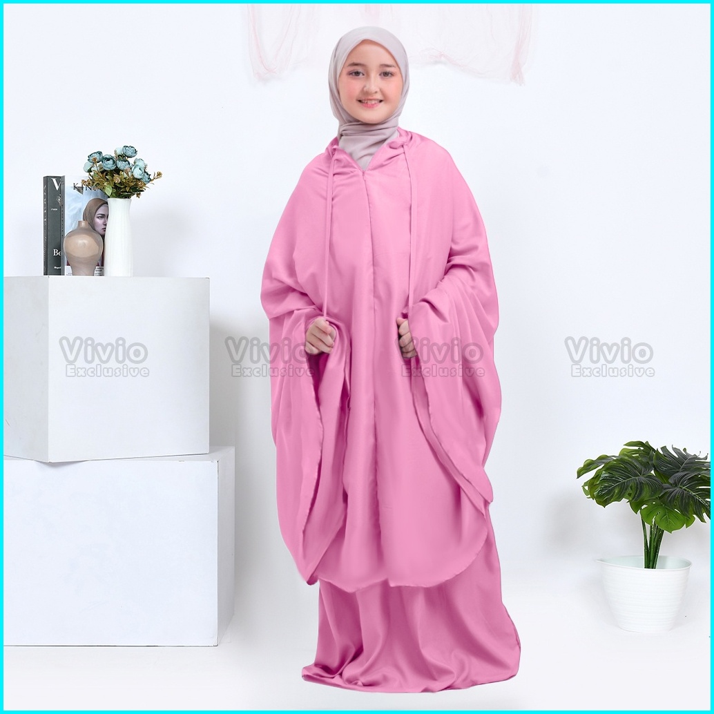 Mukena Anak Perempuan Traveling 2 In 1 Resleting Dagu Katun Premium Polos Sd Smp Remaja 7 S D 15 Tahun
