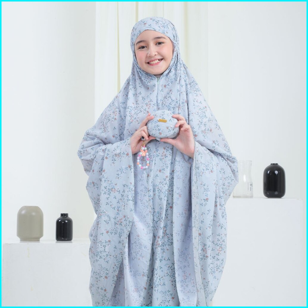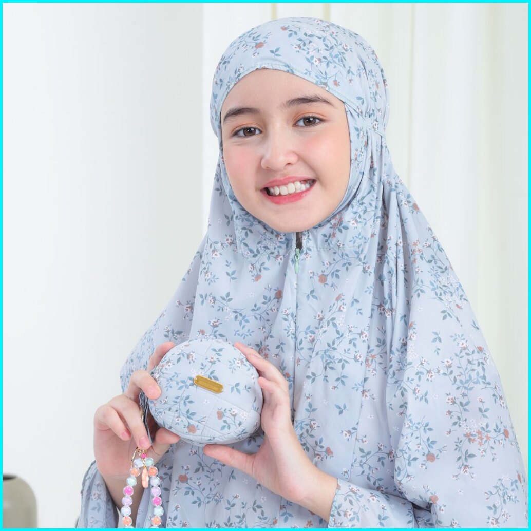 Mukena Traveling Mini Pouch Anak Perempuan Usia 6-12th Resleting 2in1 Parasut Motif Kombinasi