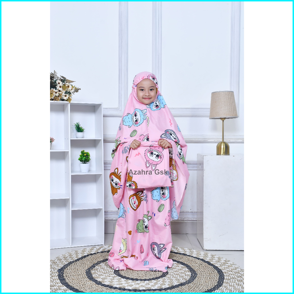 Mukenah Anak Labubu Lengkap Tas Umur 6-11 Tahun