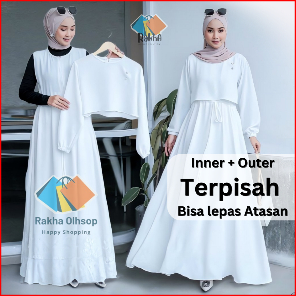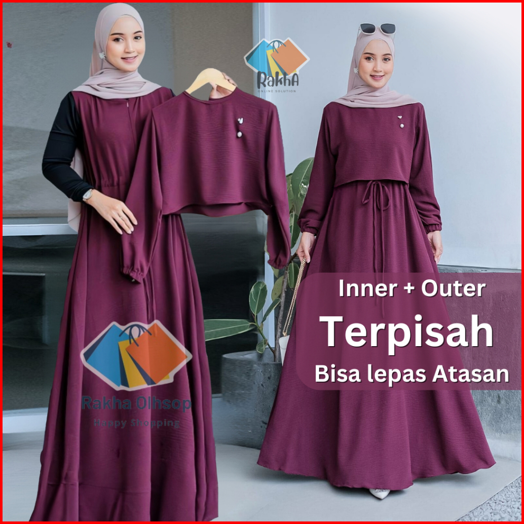 Nafisa Maxy Set 2in1 Inner Outer Crop Setelan Gamis Polos Terbaru 2024 Muslimah Baju Setelan Mocca