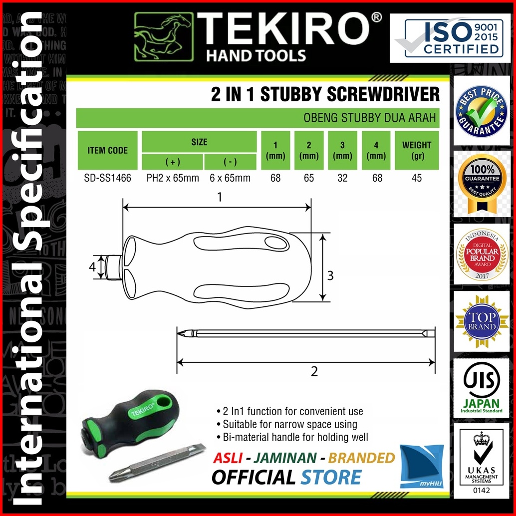 Obeng Cebol - 6 X 60 Mm Gendut Bolak Balik Stubby 2 Fungsi Tekiro