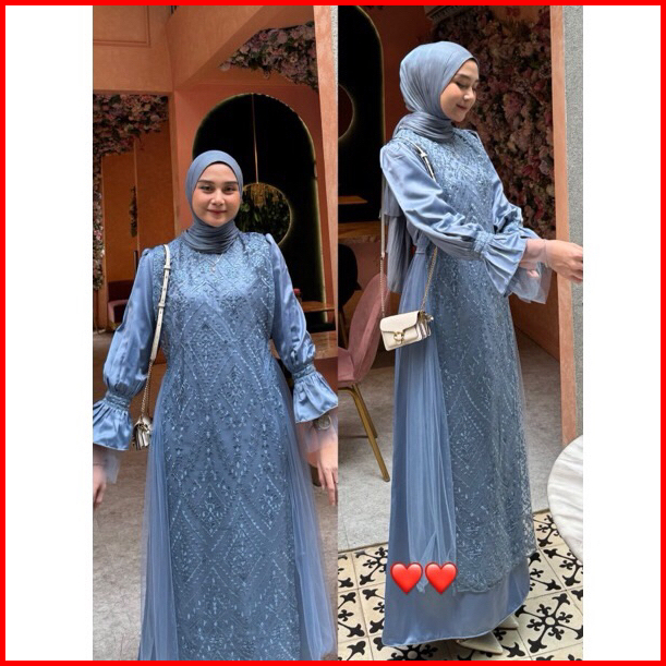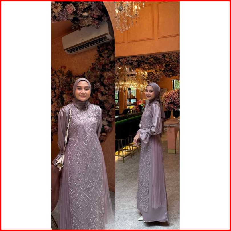 Lini Dress Tulle Gamis Brukat Kondangan Silk Premium