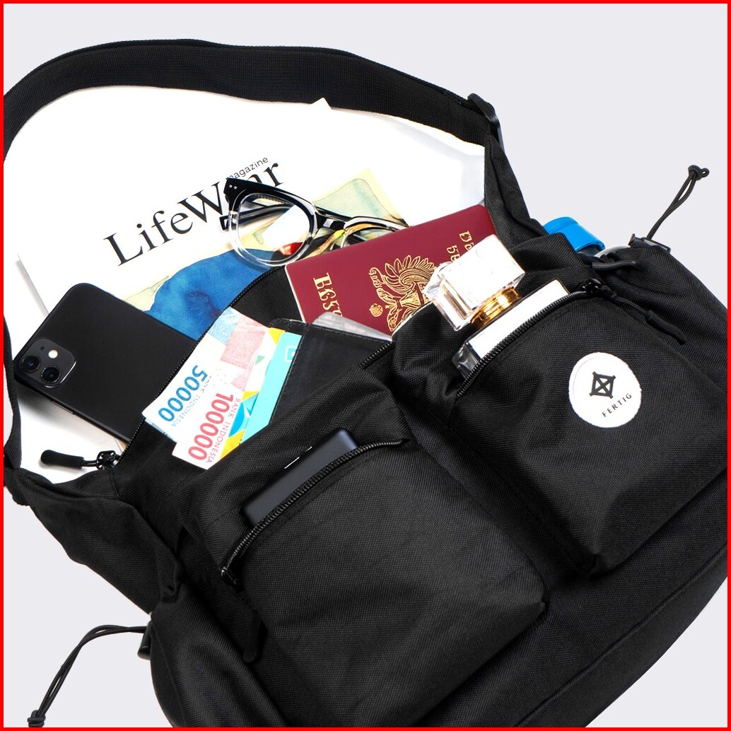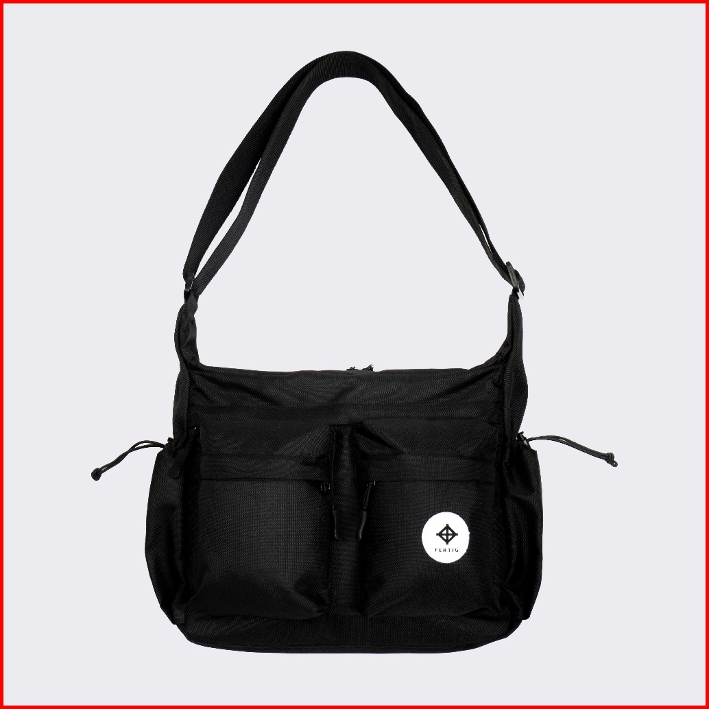 Fertig - Hilly Black Sling Bag - Tas Selempang Hitam Multi Pocket Pria Muat Banyak Kompartemen Luas