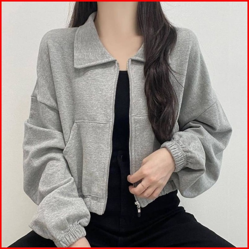 Jaket Wanita Vada Collar Crope Korean Style Jaket Sweater Vada Collar Crope Outerwear Pakaian Wanita Vada Colar Jaket