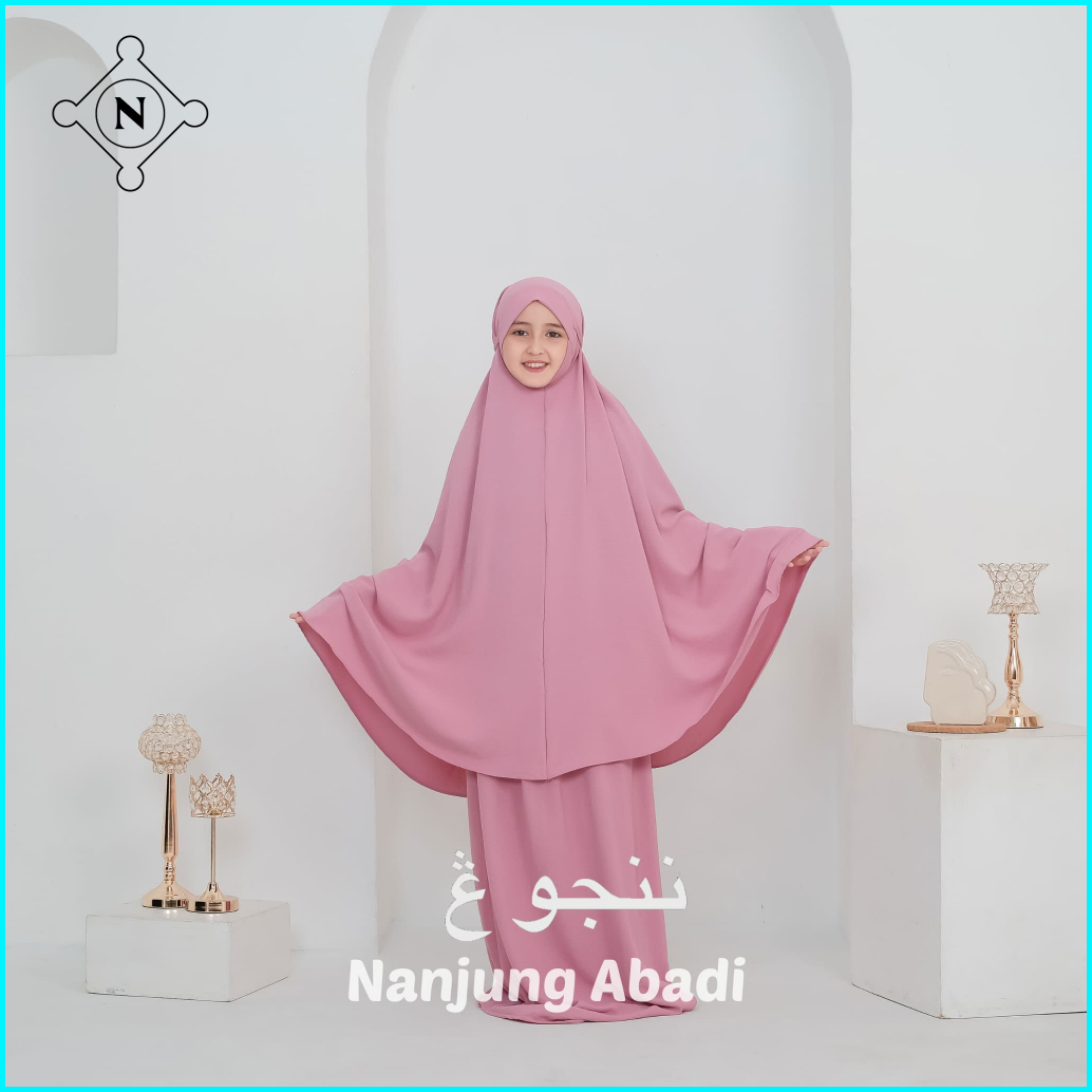 Nanjung Abadi - Mukena Anak Perempuan Khadijah Menutup Dagu 3-12 Tahun Crinkle Airflow Polos Premium