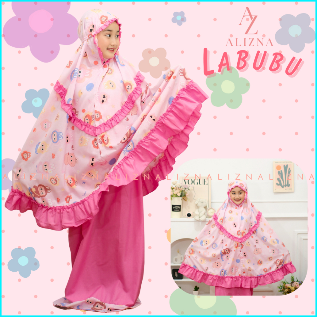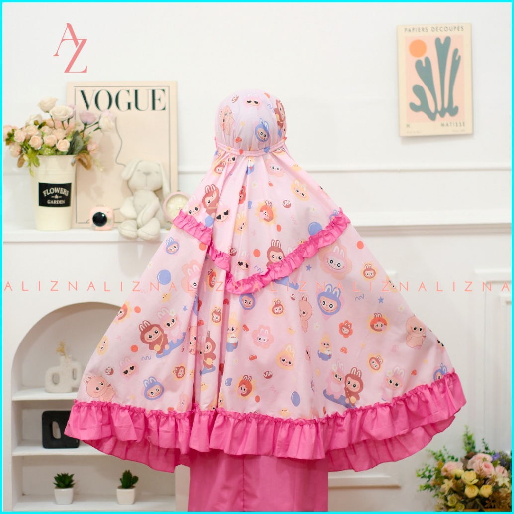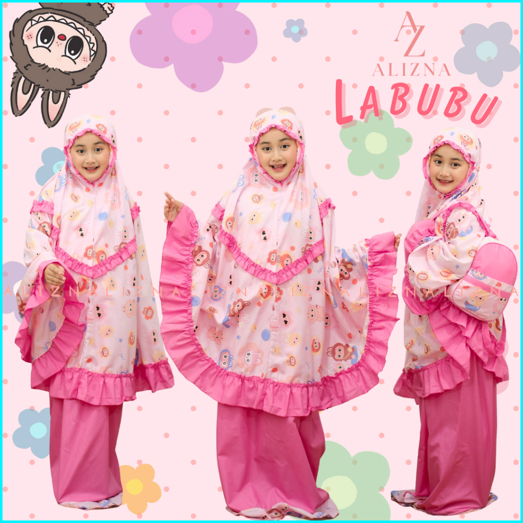 Alizna - Labubu - Mukena Anak Karakter 3in1 Free Tas Ransel Dan Sajadah Muka