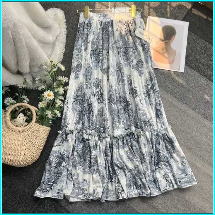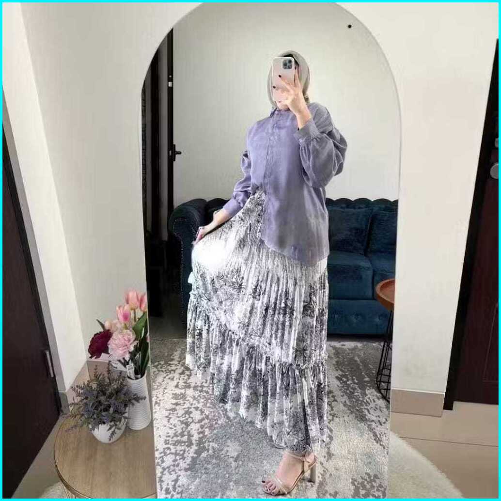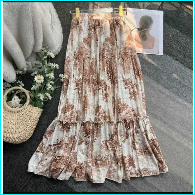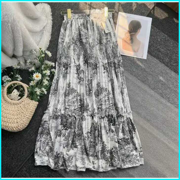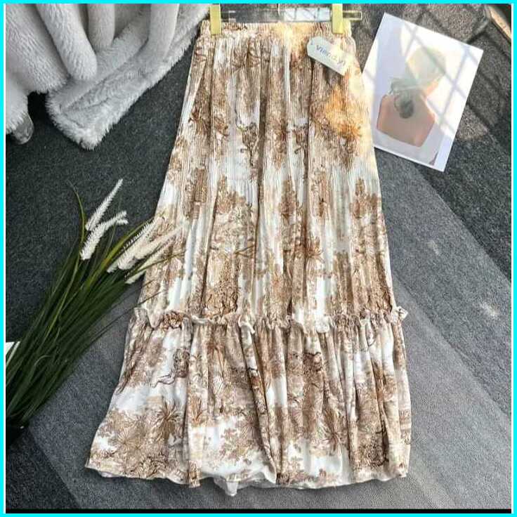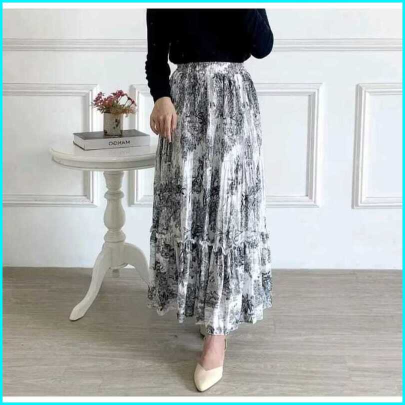 Maxi Skirt Flower Ruffle Rok Plisket Terbaru Rempel Motif Bunga Korean Style