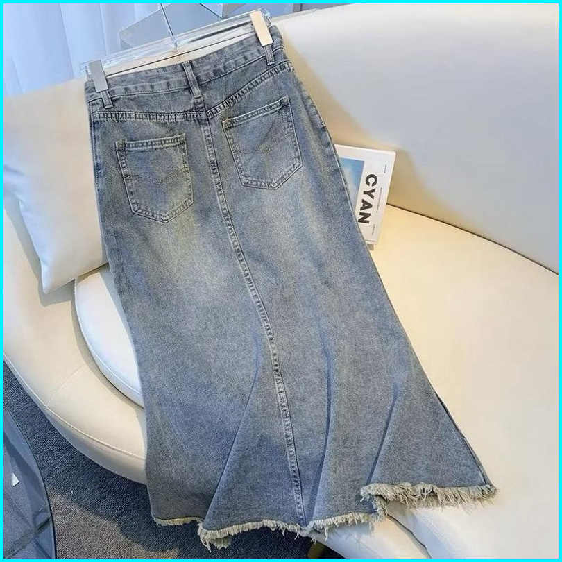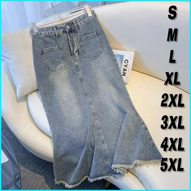 Kekinian.factory Ready Stok 5xl Jumbo Rok Duyung Jeans Korean Style Rok Jeans Wanita Panjang 7 8 Warna Hitam Retro Denim