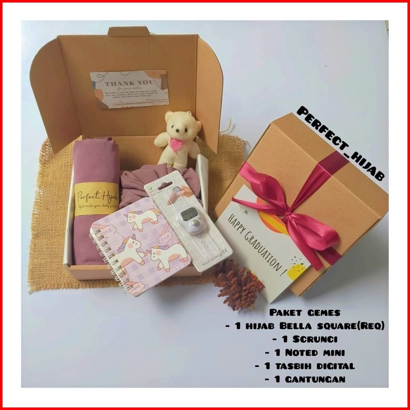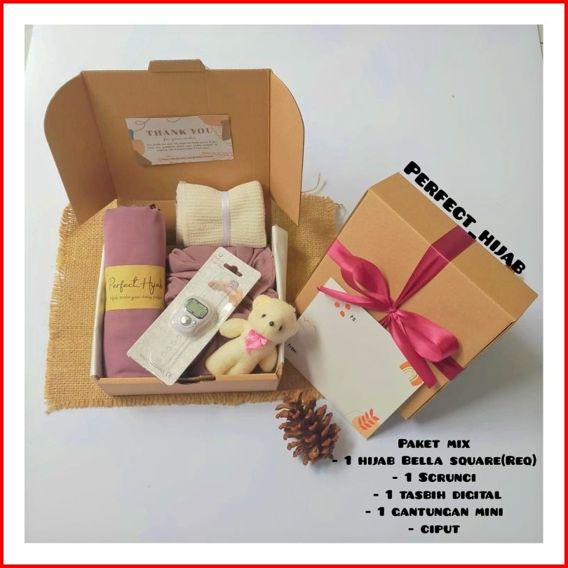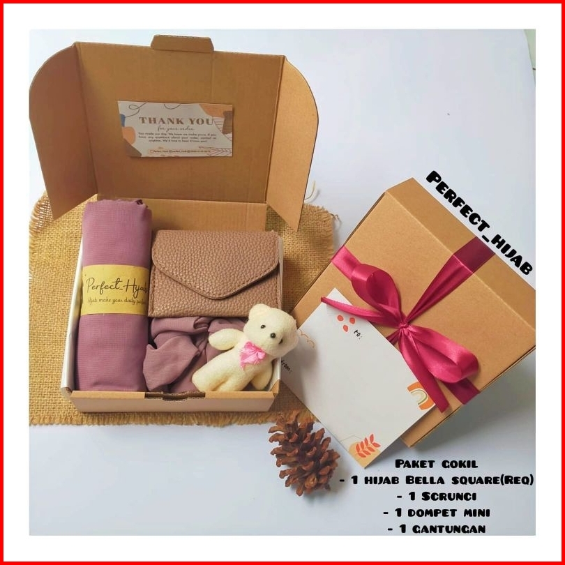 Hampers Hijab Bella Square Gift Box Kado Ulang Tahun Cewek Free Ucapan Req Warna
