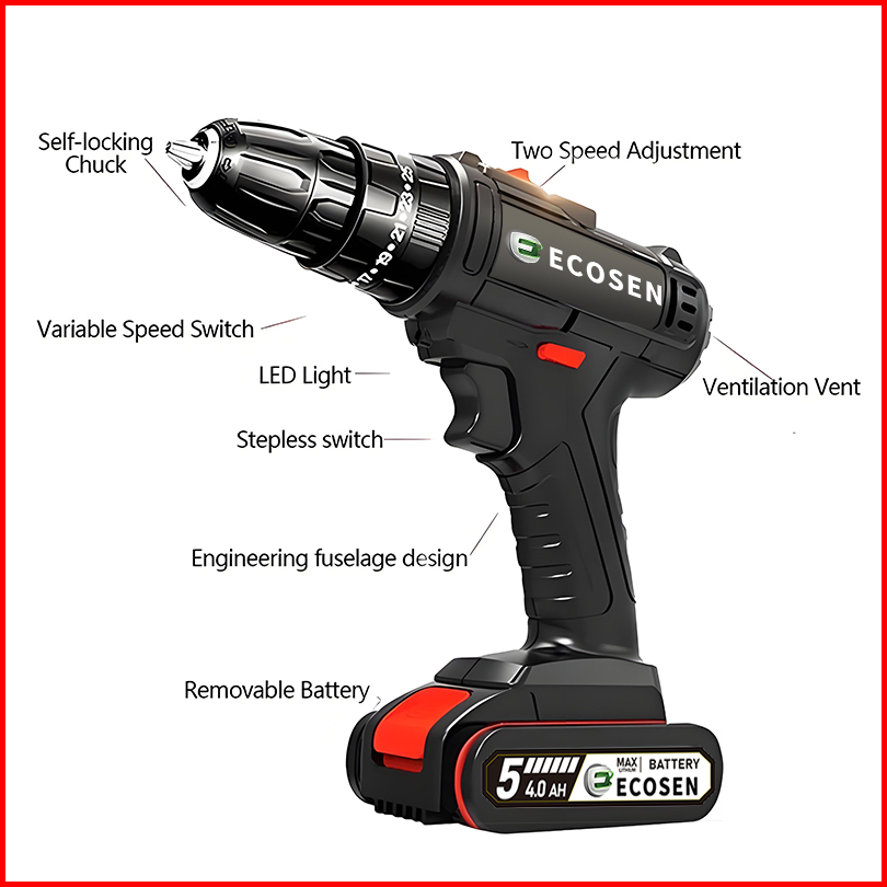 Mesin Bor Baterai Tangan 98v Bor Listrik Bor Baterai Cordless Impact Drill 2 Baterai Bor Batre