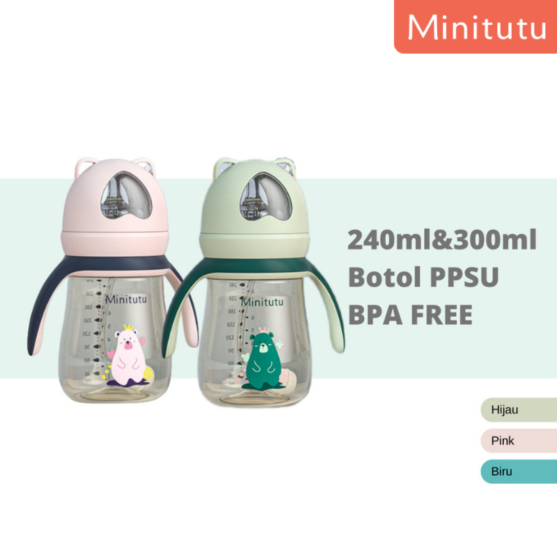 Minitutu Botol Susu Bayi PPSU 3 in 1 Botol Minum Sedotan Anak Anti Kolik BPA Free BB16