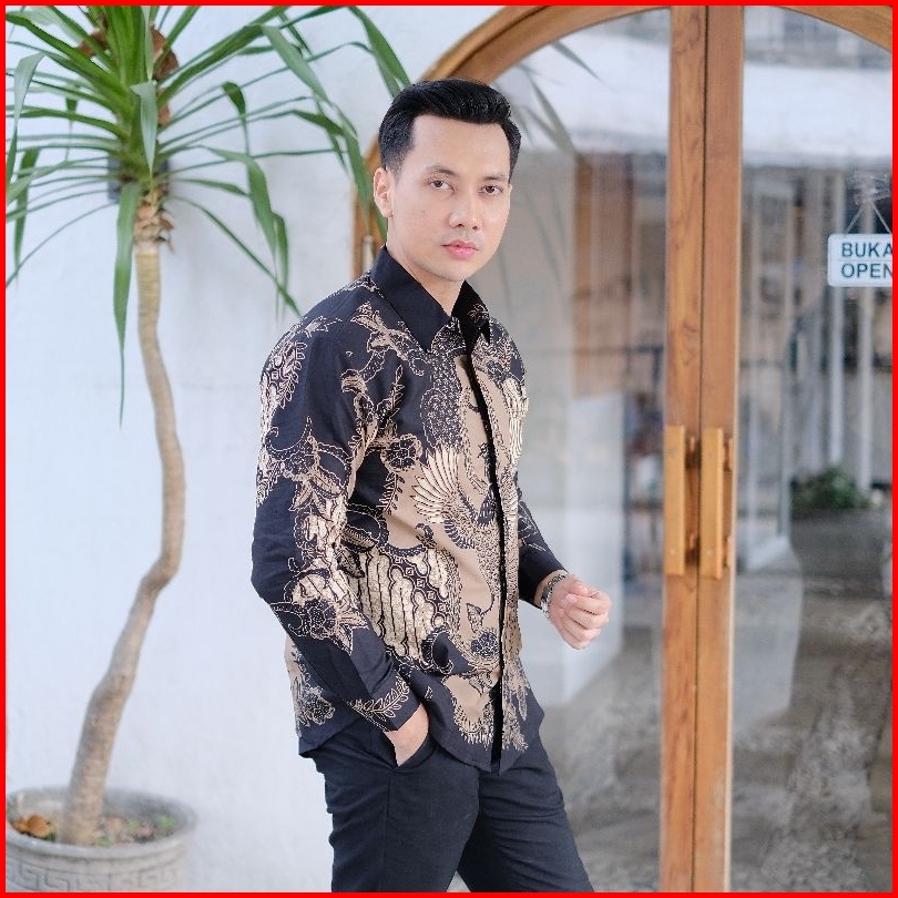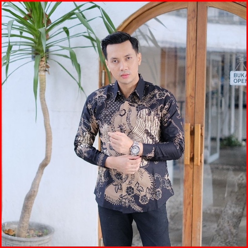 Kemeja Batik Pria Lengan Panjang Slimfit Bahan Katun Halus Baju Cowok Kekinian Modern Lapis Furing
