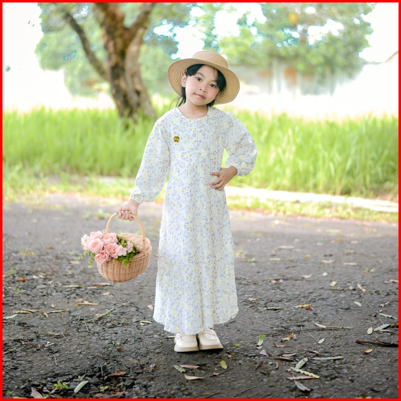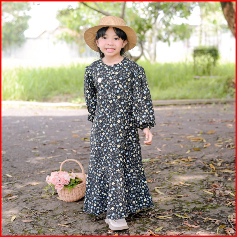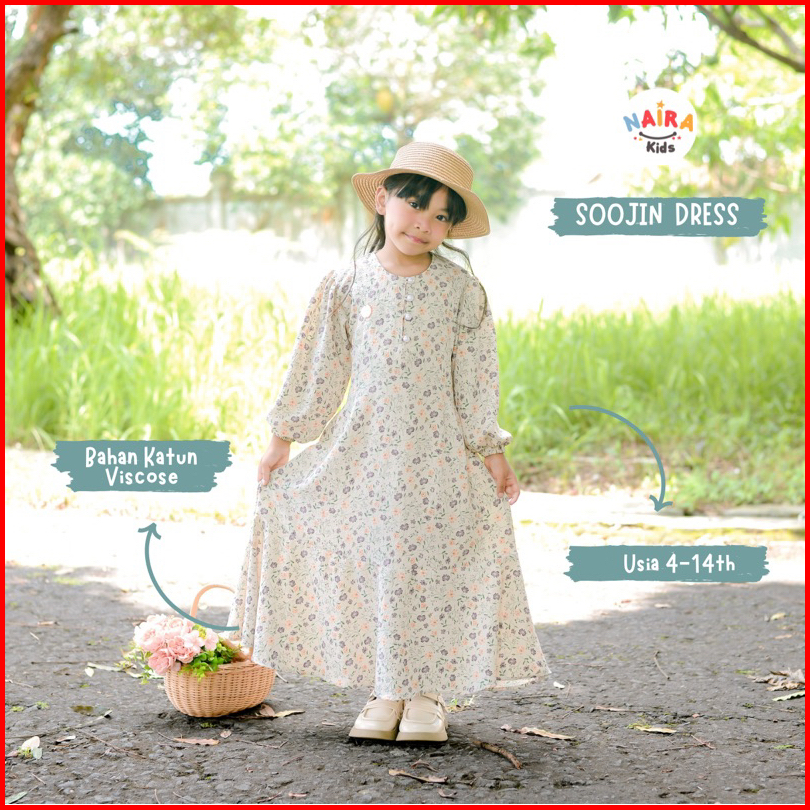 Soojin Korean Dress By Naira Kids Gamis Anak Perempuan Muslim Remaja Motif Bunga Vintage 3-14tahun Bahan Katun Viscose M