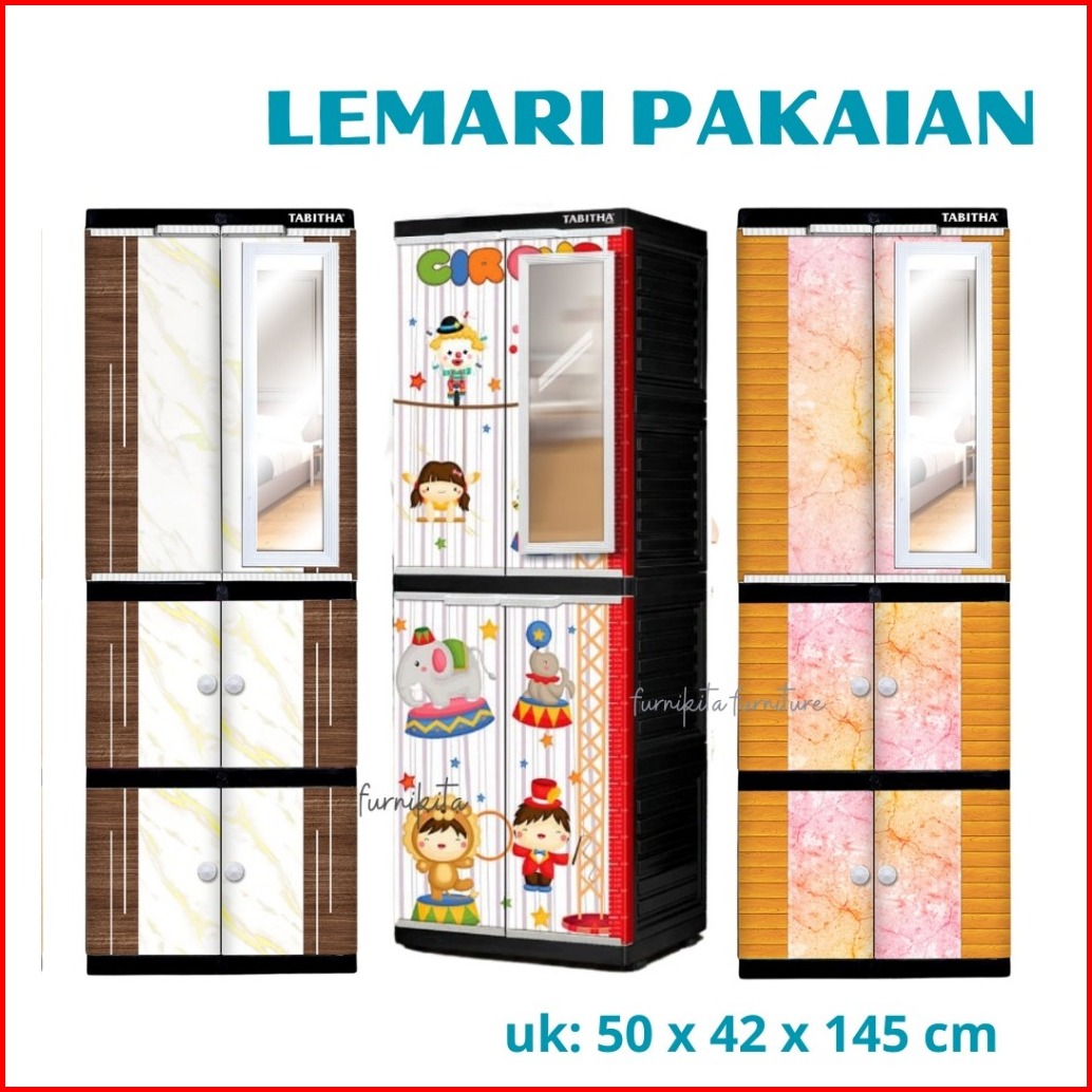 Lemari Pakaian Plastik Tabitha Susun 4 Karakter Kunci Cermin