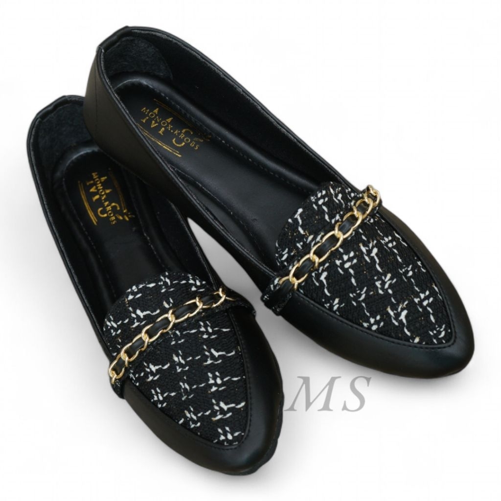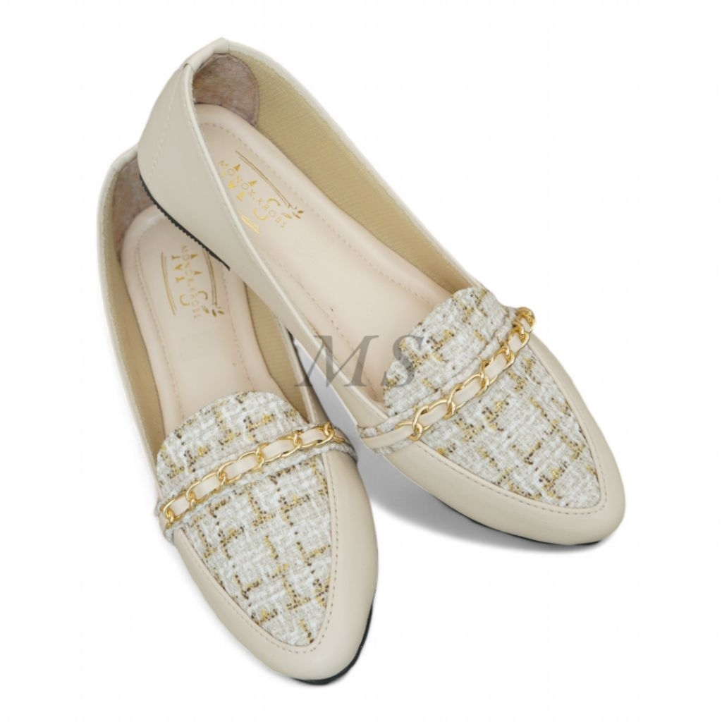 MS Enzi Flatshoes Wanita Sepatu Wanita Model Tweed Casual Sol Karet