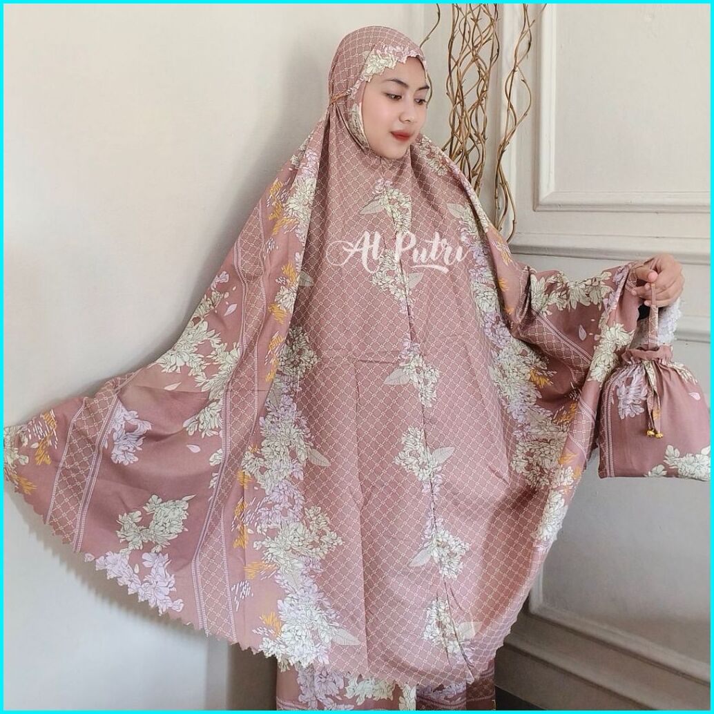 Al Putri Mukena Dewasa Travel Katun Premium Tas Mini Pouch Motif Mewah