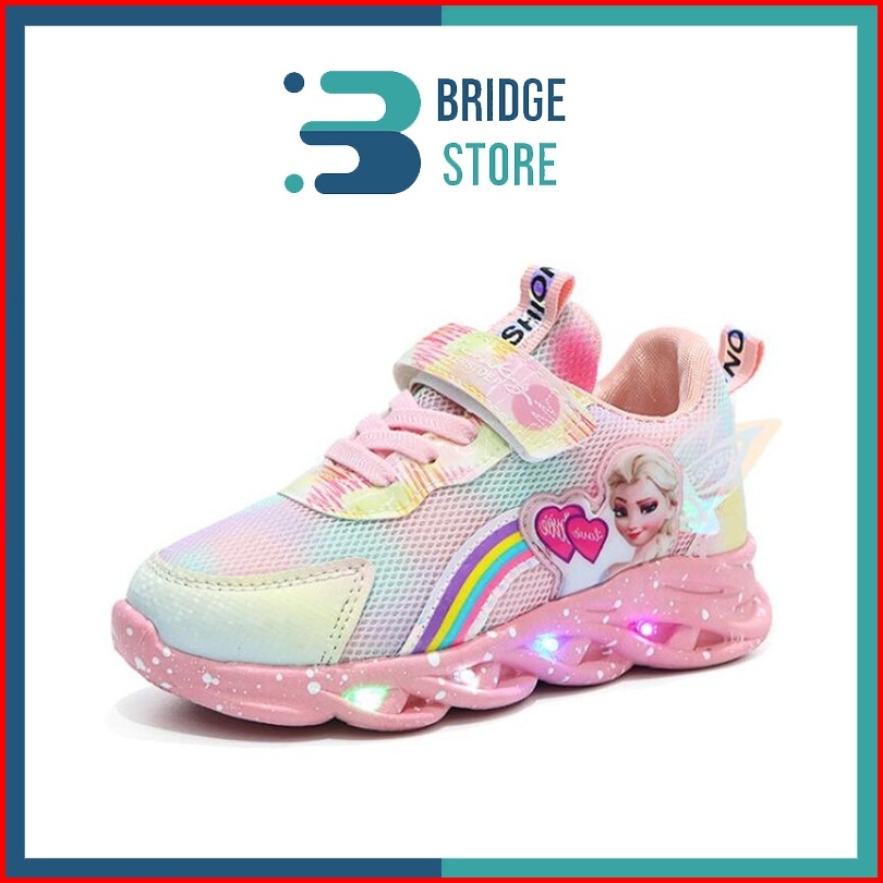 Bridgestore - Sepatu Sneakers Led Anak Perempuan Import Karakter Elsa 2022 Sepatu Sneakers Anak Frozen