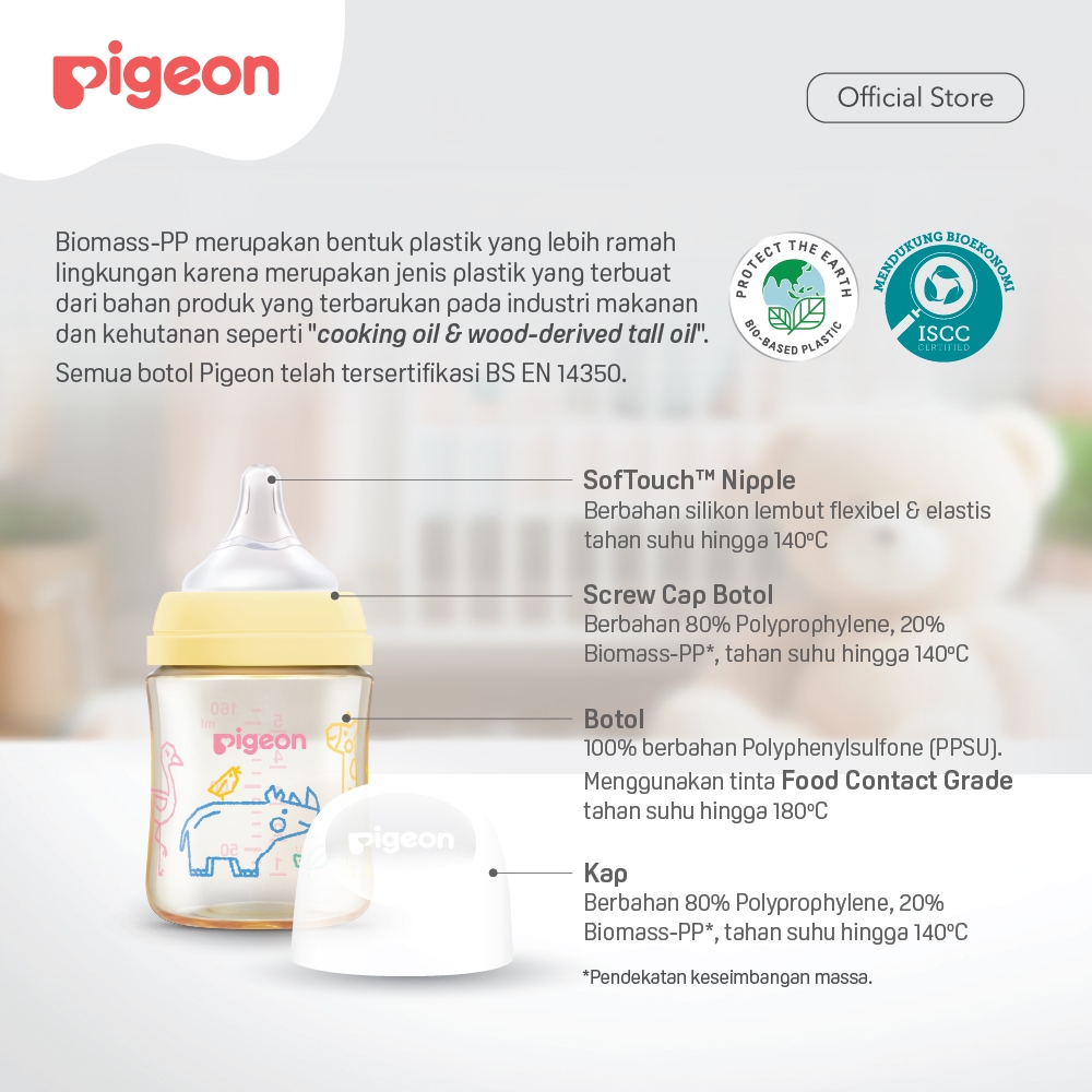 PIGEON Botol Biomass-PPSU Wide Neck 240ml with SofTouch Nipple | Botol Susu Bayi | Botol PPSU | Medical Grade | Botol R