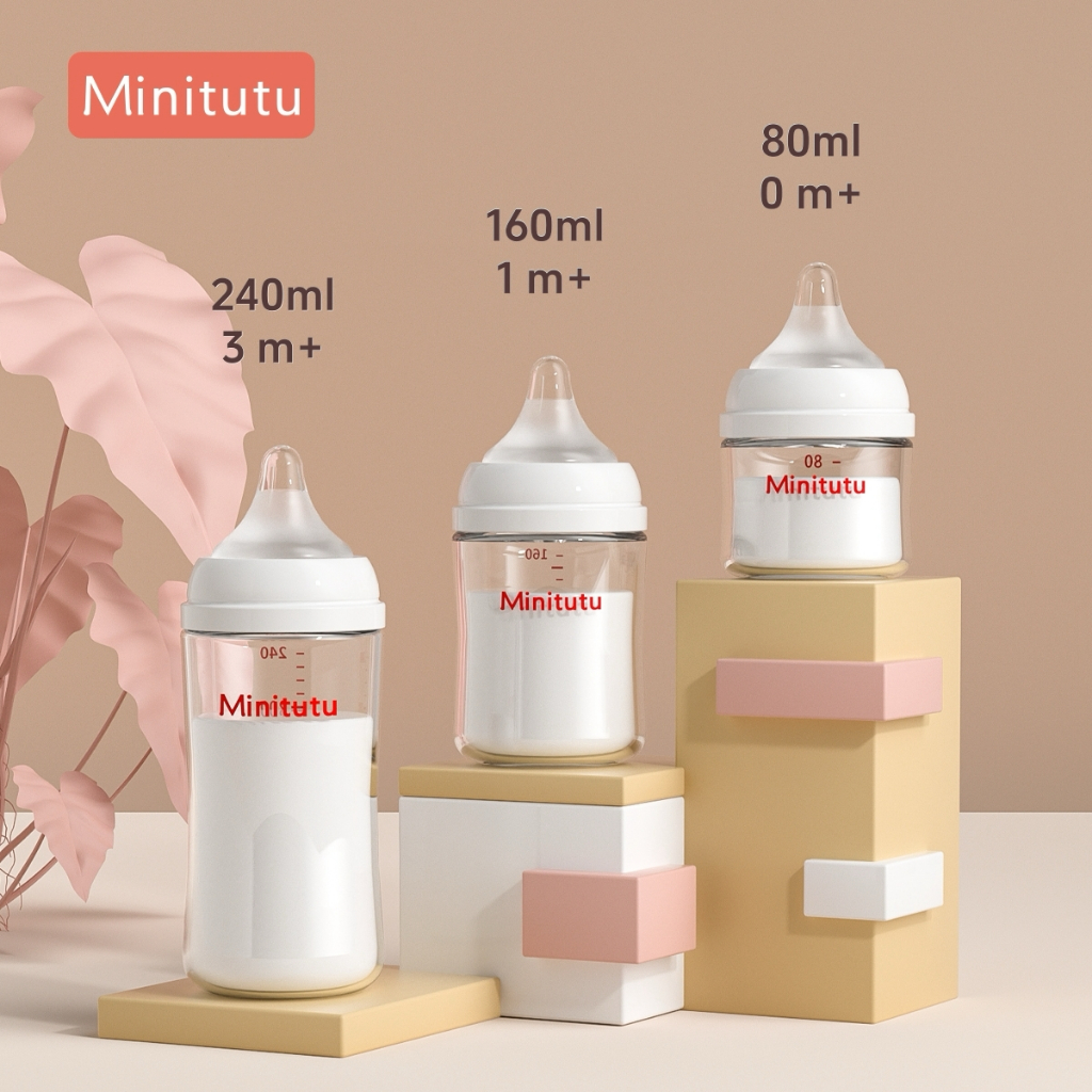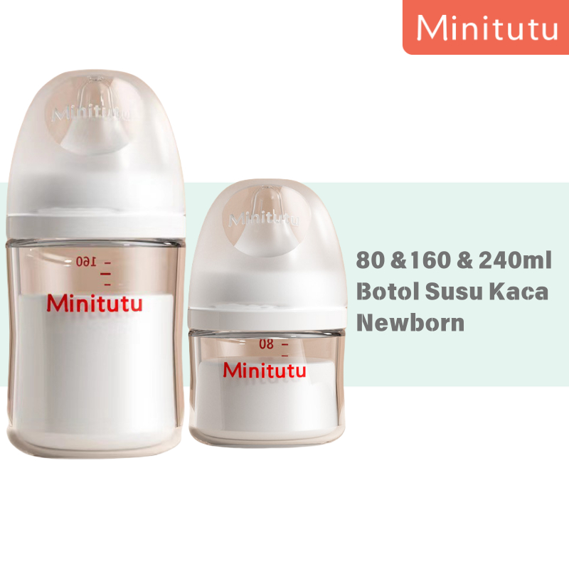 Minitutu Botol Susu Bayi Newborn Botol Susu Kaca Anti Kolik Anti Tumpah BPA Free BB25
