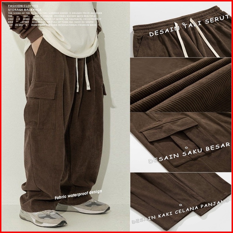 Celana Cargo Corduroy Pria Cokelat Celana Kargo Panjang Pria Hitam Loose Pants Celana Gombrang Pria Celana Panjang Pria