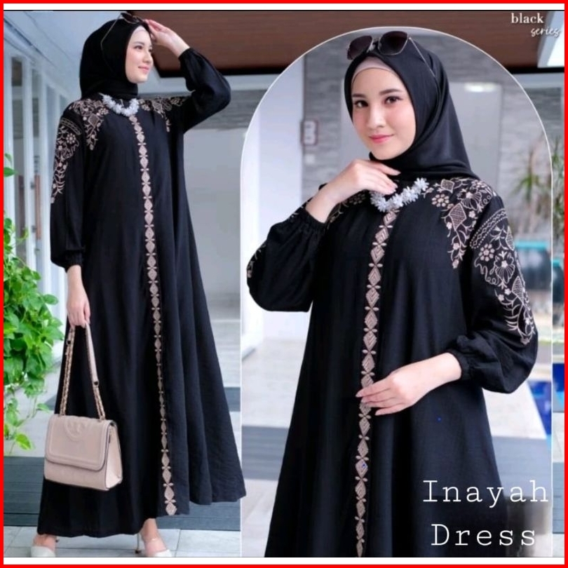 Gamis Wanita Inayah Dress Material Polo Linen Aplikasi Bordir Zipper Depan Dress Wanita Muslimah Misnadhifa Model Simpel