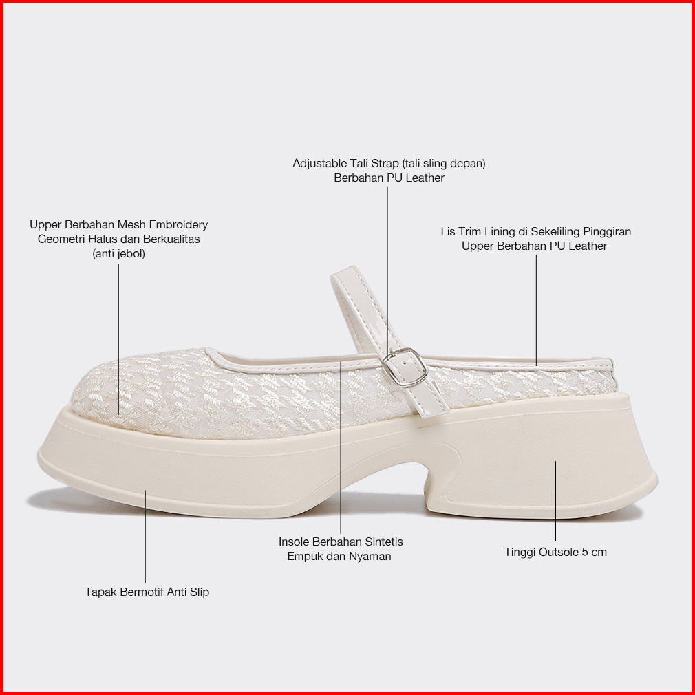 Findal Sandal Wanita Mules Wedges 4cm Mary Jane Kasual Latte 36-40 Di-090