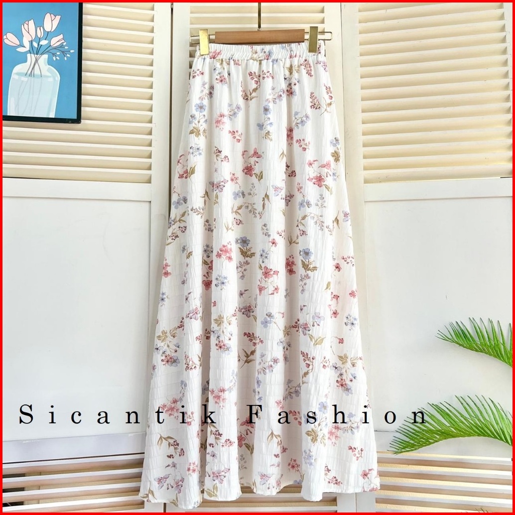 Rok Wanita Kekinian Skirt Panjang Cewek Korean Rok Wanita Cotton Crinkle
