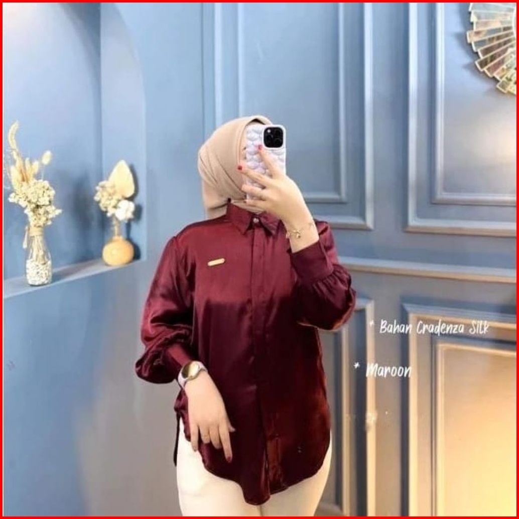 Atasan Blouse Kemeja Wanita Satin Ld 115cm Kemeja Wanita Mengkilat Elegan